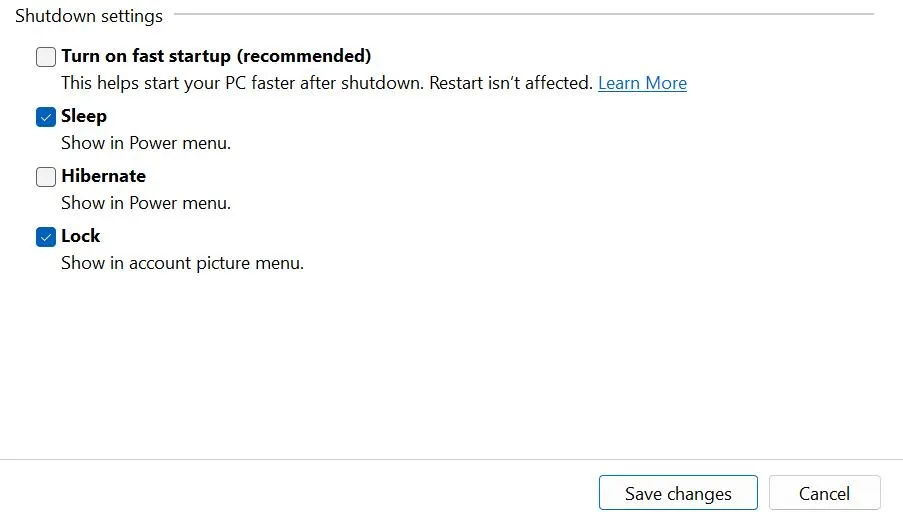 - Haal het vinkje weg bij Snel opstarten inschakelen en klik op de knop Wijzigingen opslaan rechtsonder in het venster.