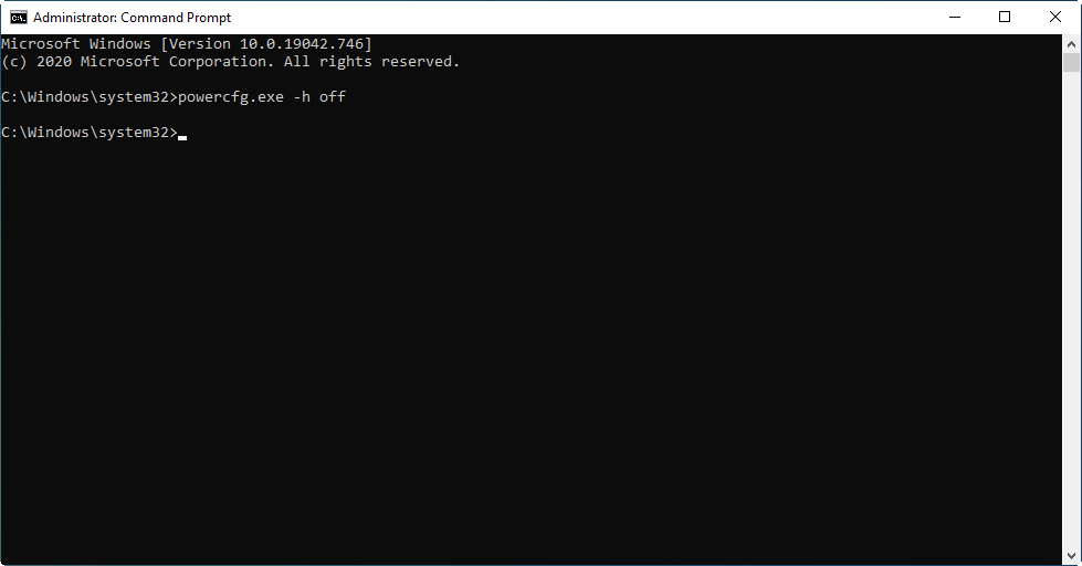 Stap 2.Invoer “powercfg -h uit' en druk op "Enter" om de slaapstand uit te schakelen.