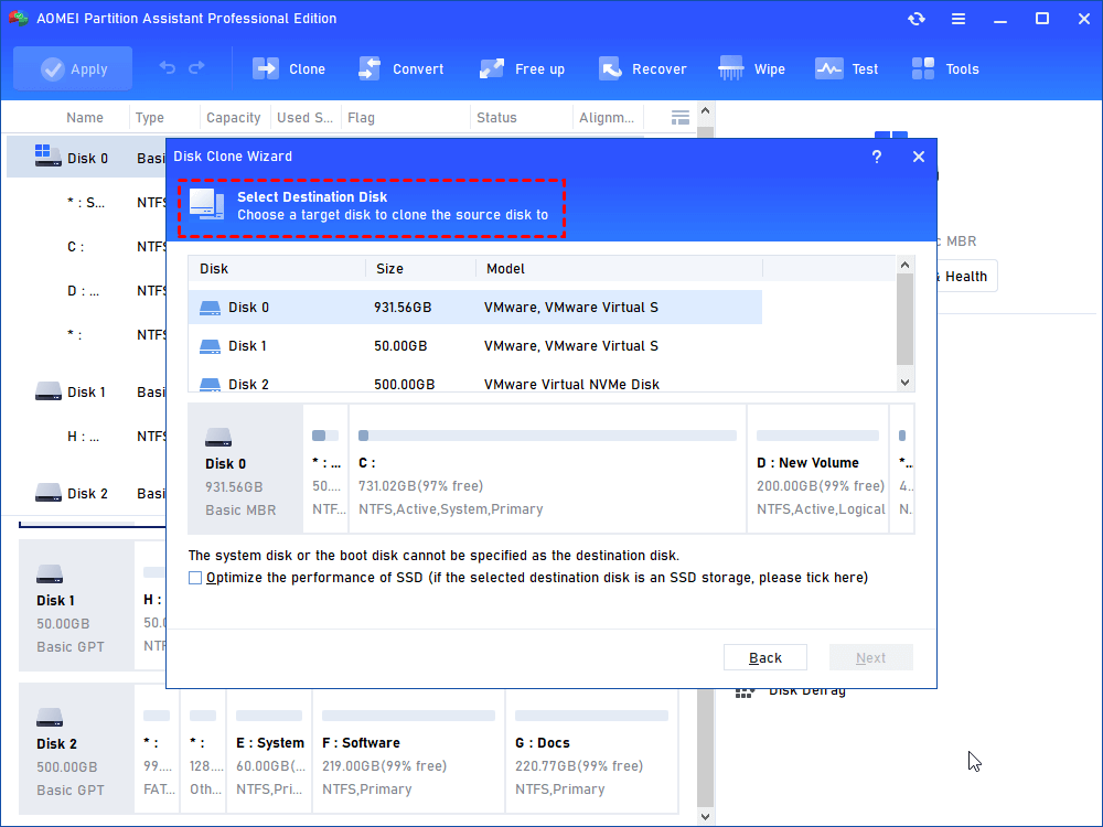 Stap 4.Selecteer vervolgens de nieuwe harde schijf en vink “Optimaliseer de prestaties van SSD” aan en klik vervolgens op “Volgende”.