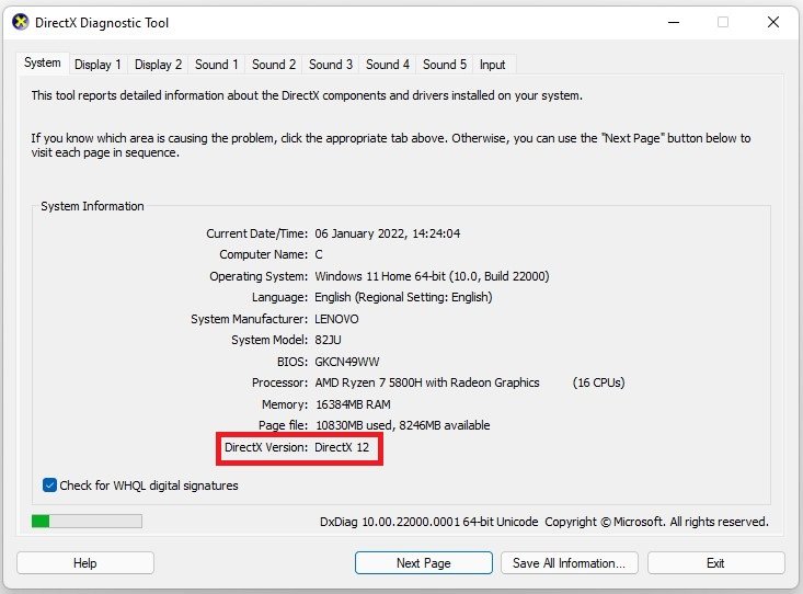 Zorg ervoor dat uw DirectX-versie up-to-date is. Zoek hiervoor naarDXDIAGzoek in uw startmenu om uwDiagnostisch hulpprogramma voor DirectX. In deSysteemtabblad, onderDirectX-versie, kunt u een voorbeeld van uw huidige DirectX-versie op uw pc bekijken. Als dit versie 12 of 11 is, hoeft u zich geen zorgen te maken over de fout in het grafische stuurprogramma wanneer u Roblox op uw pc uitvoert.
