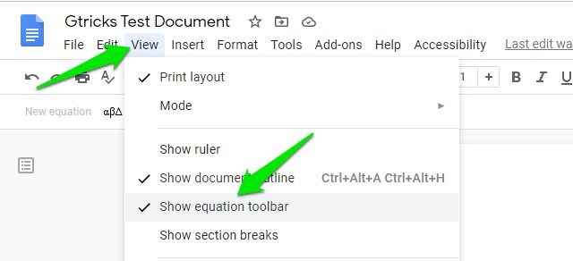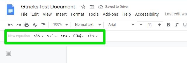 U hoeft niet naar een andere app te gaan als u een vergelijking in Google Documenten wilt invoegen. Google Documenten heeft een speciale tool voor het bewerken van vergelijkingen waarmee u eenvoudig een vergelijking op elke plek in het document kunt invoegen. De vergelijkingseditor is feitelijk een werkbalk. De werkbalk is echter standaard uitgeschakeld, dus u moet deze inschakelen om deze te kunnen gebruiken.