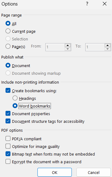 Stap 9 – Schakel de optie in en selecteer Word-bladwijzers als bron.