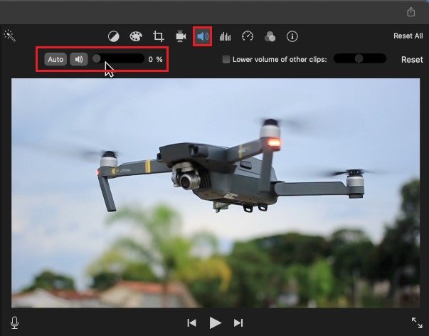 Nadat u muziek aan uw project heeft toegevoegd, kunt u overwegen het volume van uw video- en audiobestanden aan te passen. Selecteer een clip en pas het volume ervan aan naast het voorbeeldvenster rechtsboven.