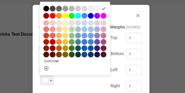 Klik hier op de knop onder de“Paginakleur”optie en je ziet een grote lijst met kleuren, van donker tot licht, waaruit je kunt kiezen.