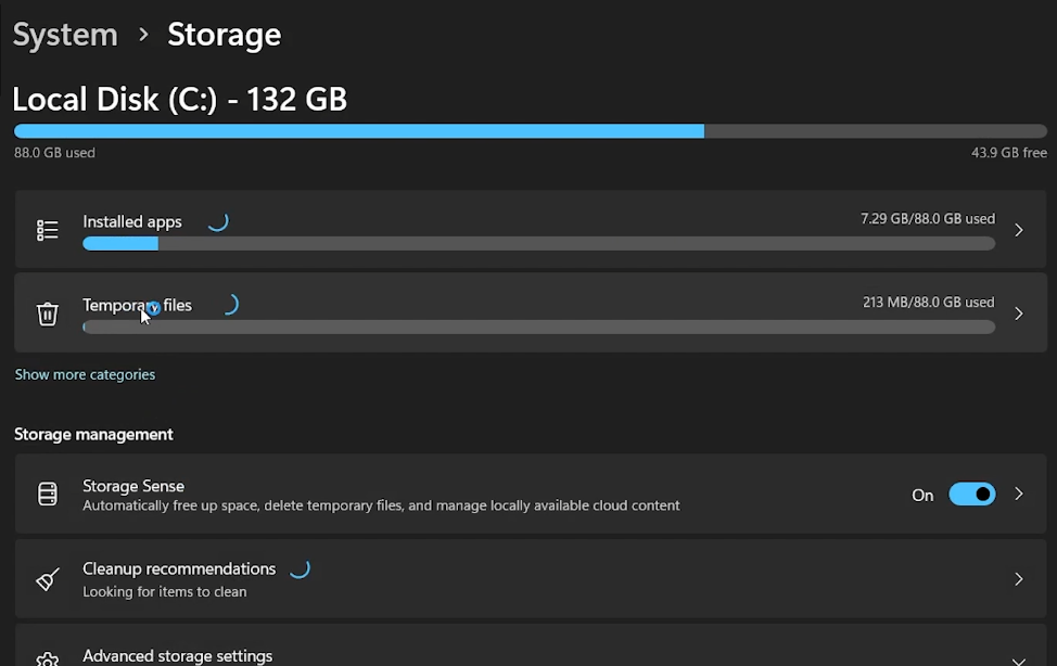 Hoe kan ik de opslagruimte van mijn pc controleren om ongewenste bestanden te vinden?Ga naar Instellingen > Systeem > Opslag om het opslaggebruik te bekijken. U kunt onnodige bestanden inspecteren en verwijderen, vooral in de secties ‘Tijdelijke bestanden’ en ‘Overig’.