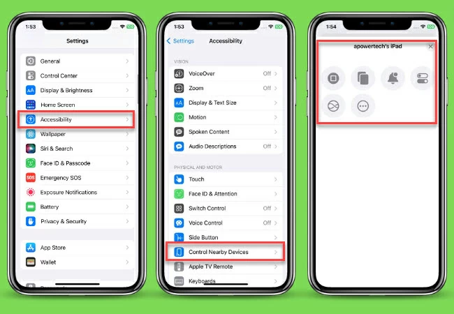 Om uw iPad met uw iPhone te bedienen, kunt u vertrouwen op de ingebouwde bedieningsfunctie van iOS 16 en latere versies. Met deze update kunnen gebruikers apparaten in de buurt beheren met behulp van hun iPhones. Met deze functionaliteit kunt u door essentiële bedieningselementen navigeren, zoals het openen van het Control Center, App Switcher, Notification Center en Siri. U kunt ook uw mediabestanden bedienen, de media afspelen/pauzeren, naar het vorige of volgende nummer gaan en het volume aanpassen. Hieronder staan de stappen om de iPad via de iPhone te bedienen met behulp van de ingebouwde methode van Apple-apparaten.