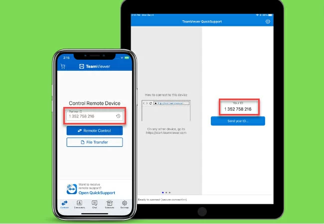 - Installeer eerst de TeamViewer-app op uw iPhone en download TeamViewer QuickSupport op uw iPad.