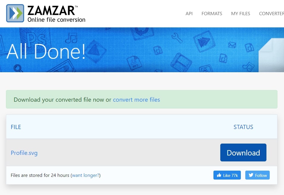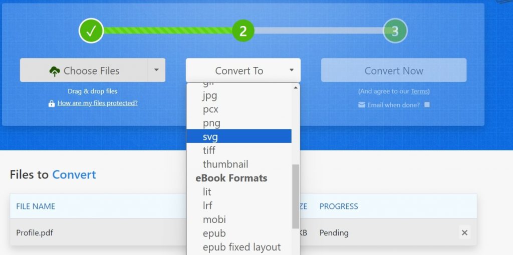 Als u geen toegang heeft tot uw pc en een PDF-bestand van SVG wilt converteren, kunt u een online conversietool gebruiken. Zamzar is bijvoorbeeld een van de meest populaire keuzes bij het converteren van bestanden van het ene formaat naar het andere. Het ondersteunt verschillende formaten en biedt gratis 2 conversies per dag.