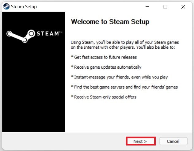 Volg het Steam Setup-installatieprogramma