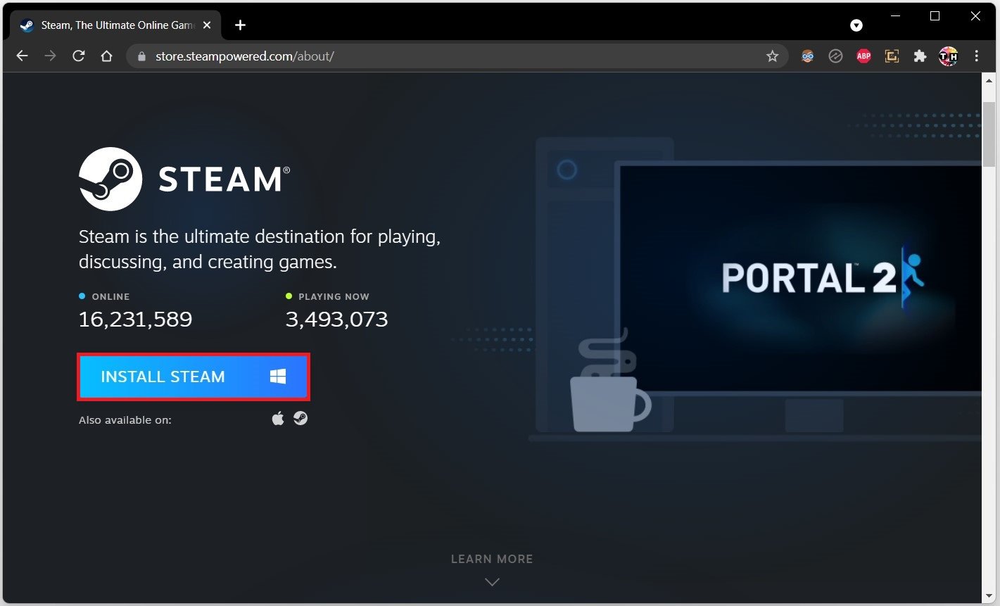 om naar de Steam-downloadpagina te gaan. Klik op het groenInstalleer Steamknop.