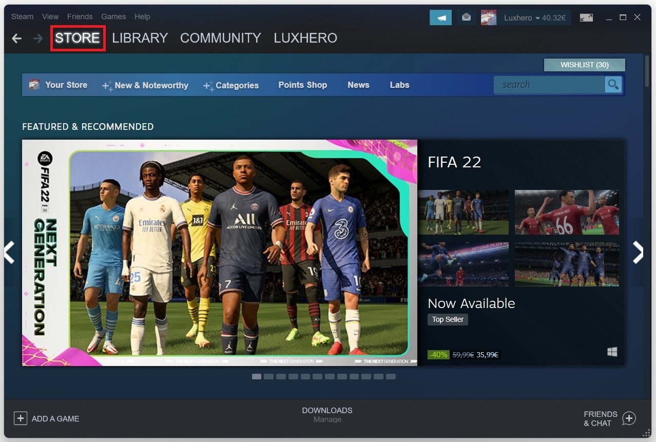 Nadat je bent ingelogd op je Steam-account, krijg je de Steam-winkelpagina te zien.
