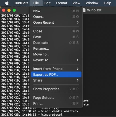Methode 1. Exporteer WhatsApp Chat als PDF via Teksteditor(Mac)