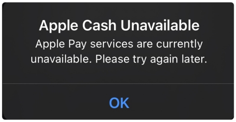 Fout 1. Apple Cash niet beschikbaar