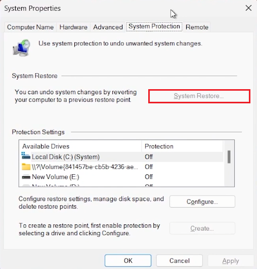 Zoek naar "Een herstelpunt maken" in de Windows-zoekbalk en open het.
