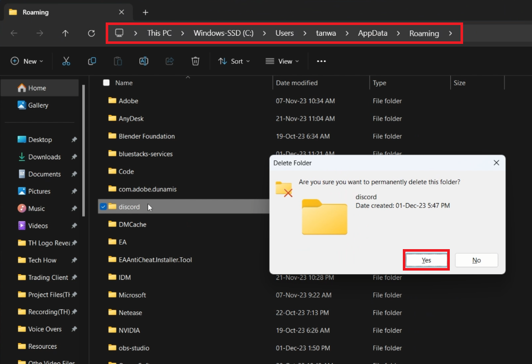 Windows Key + R, typ%AppData%en druk op Enter. Hiermee wordt de bestandsverkenner geopend naar de map AppData.Discord-cache verwijderen:Zoek en open de map ‘Discord’. Verwijder deze map om alle gegevens in de cache te wissen. Dit heeft geen invloed op uw Discord-accountgegevens, zoals vriendenlijst of berichtgeschiedenis.
