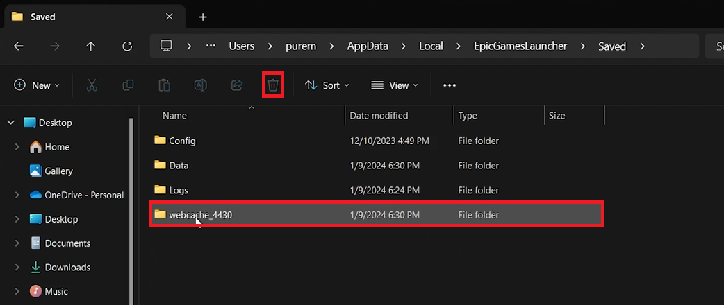 Local > Epic Games Launcher > Saved.Webcachemap verwijderen:Zoek en verwijder de submap ‘Web Cache’.