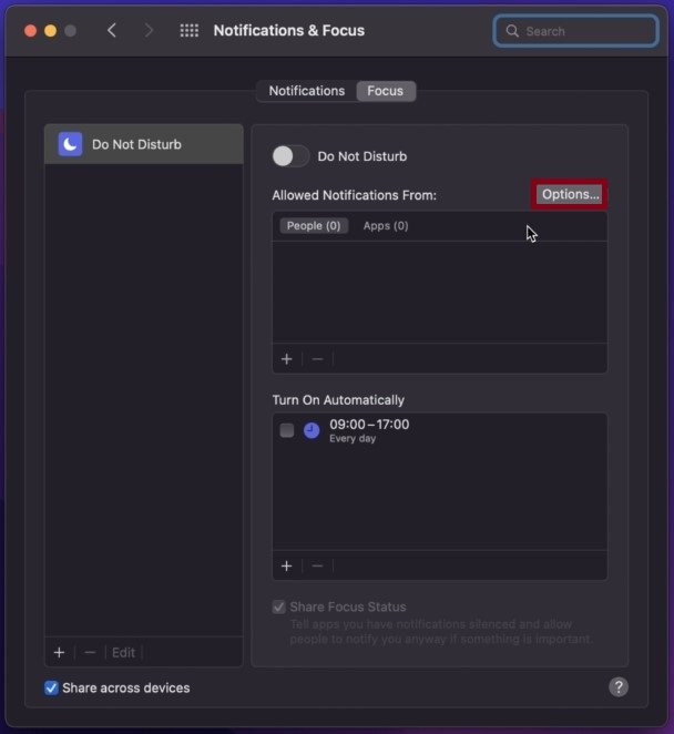 Ten slotte moet je ervoor zorgen dat je momenteel geen focusmodus gebruikt, waardoor sommige meldingen, zoals iMessage-meldingen op je Mac, zouden worden uitgeschakeld. Klik op deControlecentrumpictogram in uw taakbalk om deze uit te schakelenFocusmodusdat zou actief kunnen zijn.