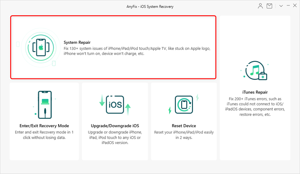 Stap 1. Download AnyFix, installeer het en voer het uit op uw computer. Sluit uw iPad aan op de computer en kies de Systeemherstelmodus.