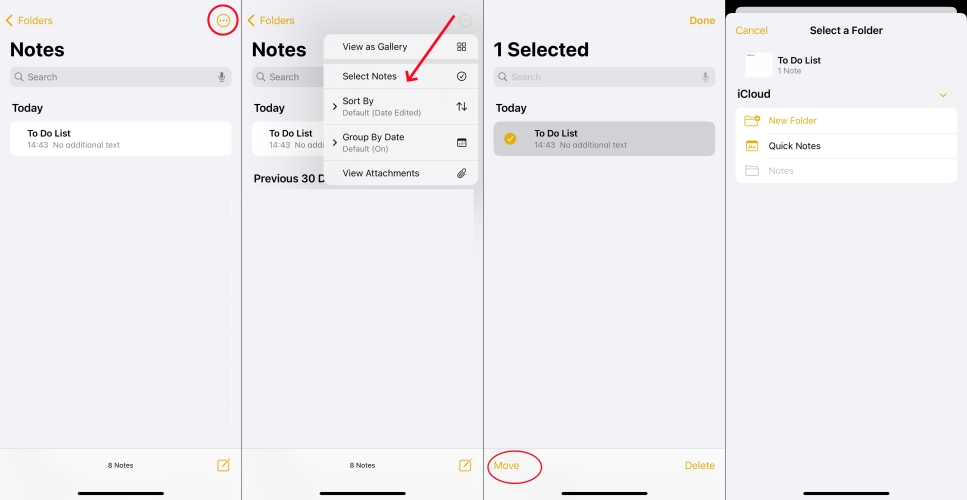 Stap 3.Selecteer de notities die u wilt verplaatsen en tik eropBeweging.