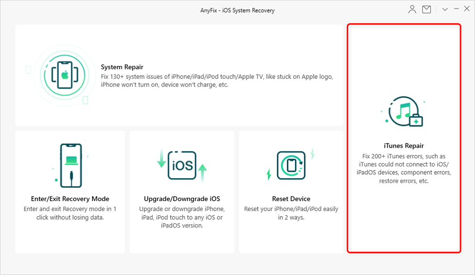 Als de bovenstaande methoden niet werken, kunt u proberen iTunes-fouten op te lossen.AnyFix– iOS-systeemherstel is een tool van derden die Apple-gebruikers kan helpen iOS-systeemproblemen en iTunes-update-/herstelfouten op te lossen. Als je iTuneskan het iOS-apparaat niet herkennen/verbinden/synchroniseren, inclusief iTunes blijft hangen bij het voorbereiden van de iPhone voor herstel, AnyFix kan u helpen deze problemen op te lossen.