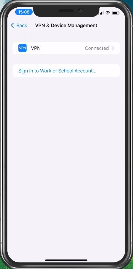 iPhone-instellingen > Algemeen > VPN- en apparaatbeheer