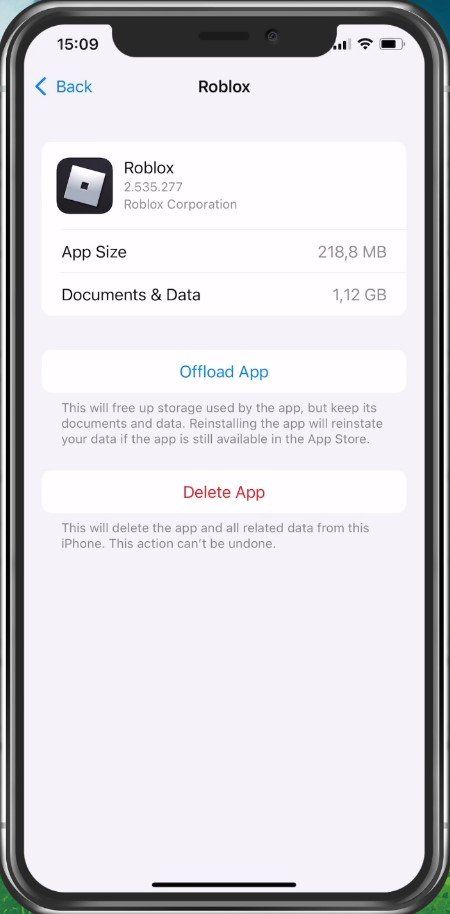 iPhone-instellingen> Algemeen> iPhone-opslag> Roblox