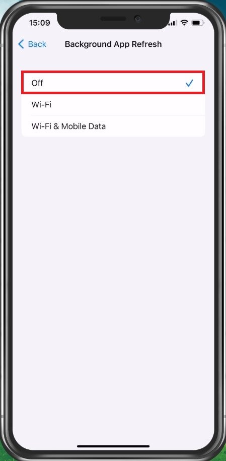 Vervolgens terug in uwAlgemeeninstellingen, tabblad aanAchtergrondapp vernieuwen. Hier moet u deze instelling eenvoudigweg uitschakelen terwijl u in de game zit, om te voorkomen dat uw apparaat tijdens de game andere applicaties bijwerkt.