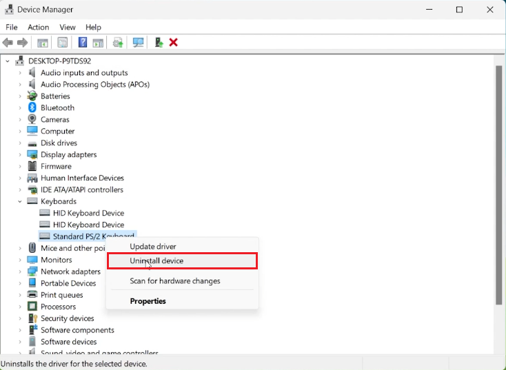 Keer terug naar Apparaatbeheer en klik nogmaals met de rechtermuisknop op het problematische toetsenbord.