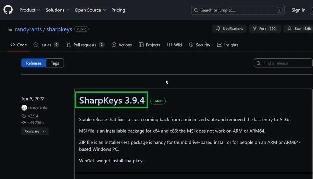 Zoek naar het bestand “Sharpkeys394.msi” in de lijst en klik op de knop Downloaden.