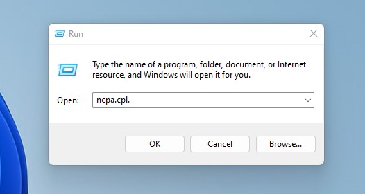 Stap 2:Type –ncpa.cpl.