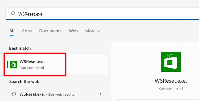 Stap 2:Type –WSReset.exe.