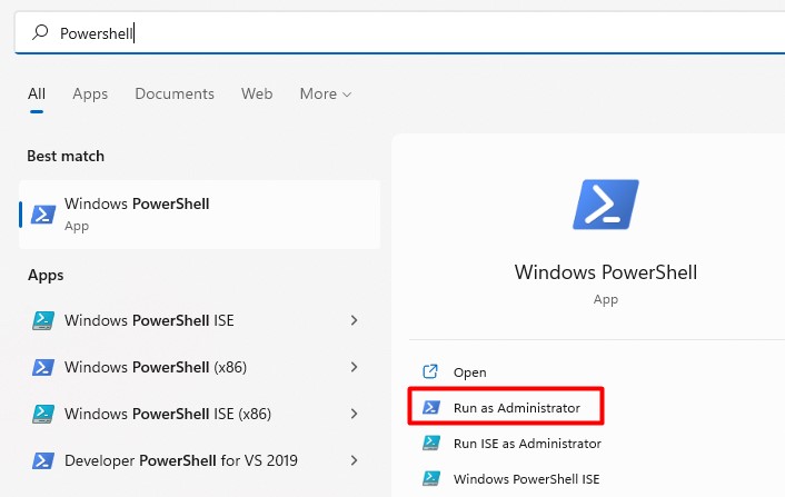 Stap 2:Typ in –Powershell.