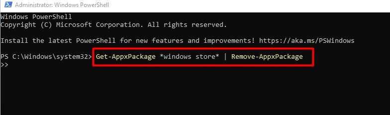 Get-AppxPackage *windows store* | Verwijder AppxPackage