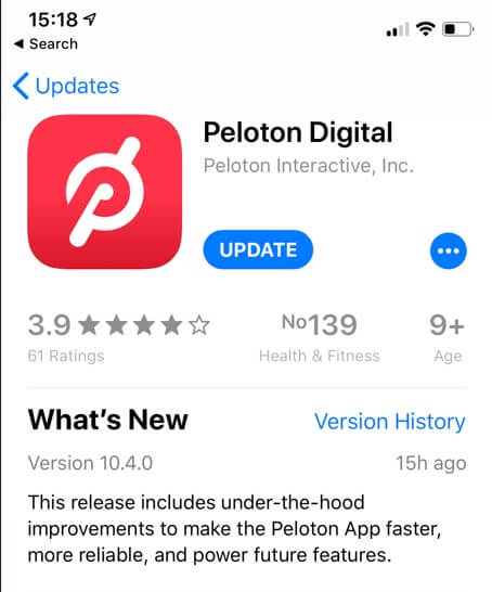 - KraanUpdateom de bij te werkenPelotonappnaar de nieuwste versie.