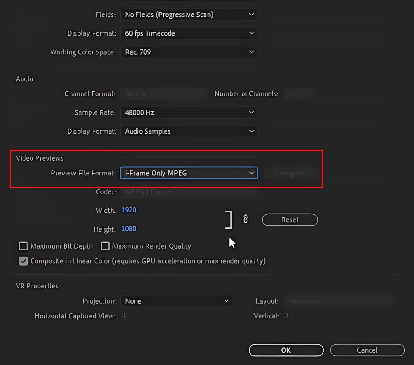 Adobe Premiere Pro > Reeks > Reeksinstellingen