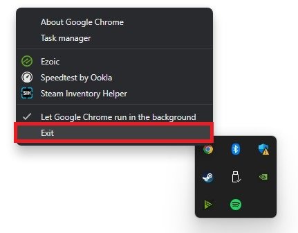 Zorg ervoor dat u uw standaardbrowser gebruikt wanneer u op Roblox.com navigeert en games opstart. Sluit uw browser volledig af door alle vensters te sluiten, klik met de rechtermuisknop op de browser in uw systeemvak en selecteerUitgang.