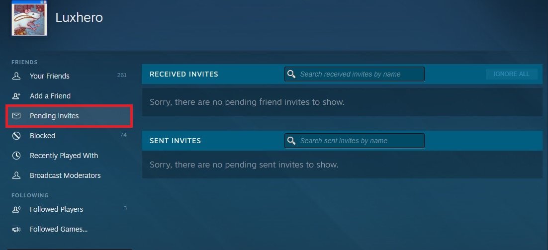 Steam-profiel > Vrienden > Openstaande uitnodigingen