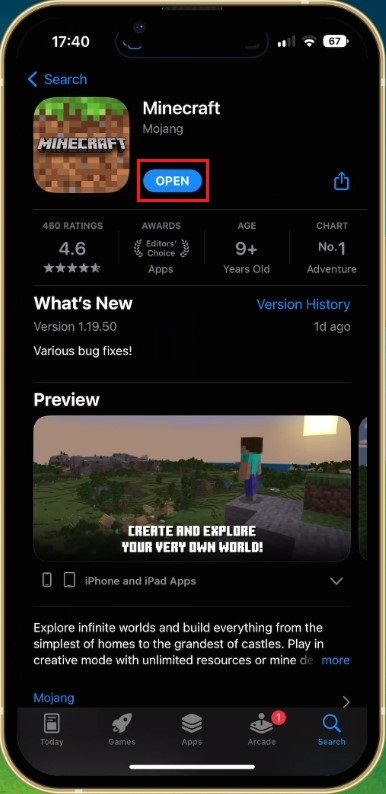 Update Minecraft in de App Store
