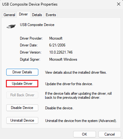 Update het apparaatstuurprogramma:Ga indien nodig verder met het updaten van het stuurprogramma door de optie ‘Stuurprogramma bijwerken’ in het eigenschappenvenster te selecteren. Deze actie kan het probleem verlichten en de functionaliteit van het apparaat verbeteren.