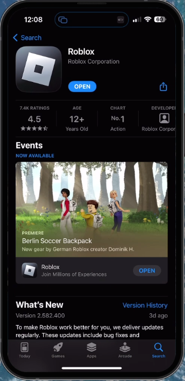 Soms kunnen opties er anders uitzien of helemaal niet zichtbaar zijn. Dit kan te wijten zijn aan het feit dat uw Roblox-applicatie niet de nieuwste versie is. Dit is wat u kunt doen: