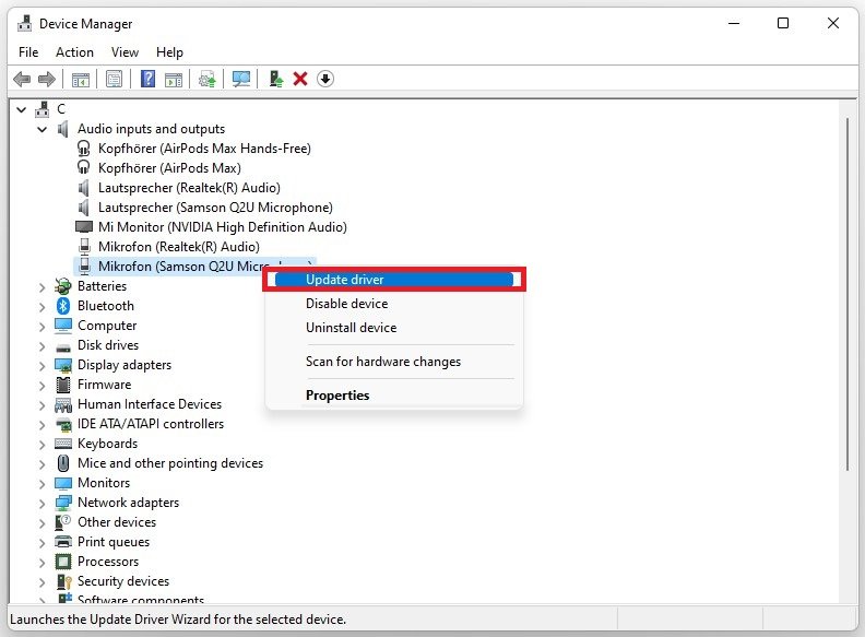 Apparaatbeheer > Audio-invoerapparaat > Stuurprogramma bijwerken