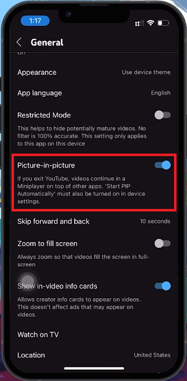 Hoe schakel ik de PiP-modus voor YouTube in op mijn iPhone?Om de PiP-modus in te schakelen, opent u de YouTube-app, tikt u op uw profielpictogram, gaat u naar ‘Instellingen’ > ‘Algemeen’ en schakelt u de instelling ‘Picture in Picture’ in.