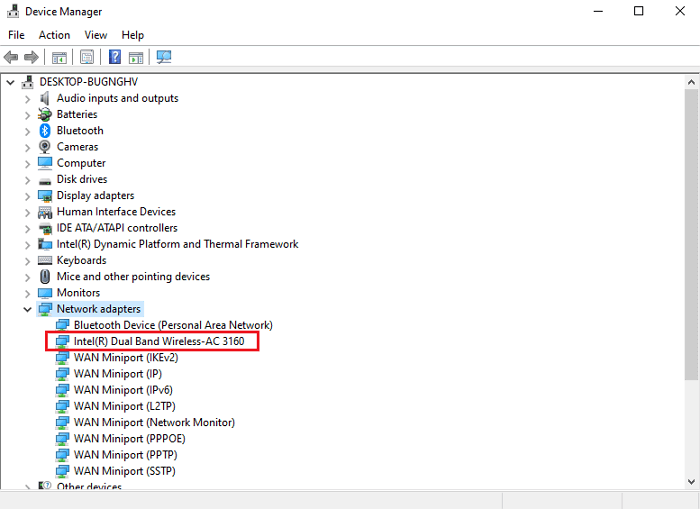 Klik met de rechtermuisknop op de Windows Start-knop en open vervolgens Apparaatbeheer > Netwerkadapters. Als u Intel® Dual Band Wireless-AC 3160 of iets dergelijks ziet, ondersteunt uw apparaat Wireless Display.