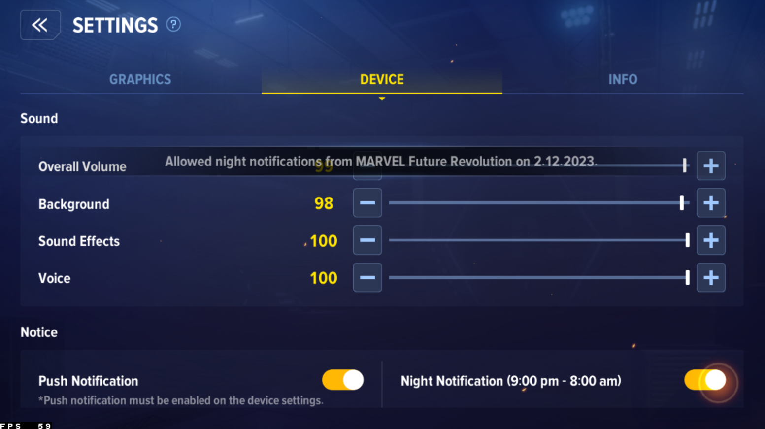 In jouwApparaatMet deze volumeschuifregelaars kunt u de geluidsinstellingen wijzigen en vervolgens uw instellingen afsluiten. Waarschijnlijk moet je de applicatie opnieuw opstarten voordat je Marvel Future Revolution kunt gaan spelen.