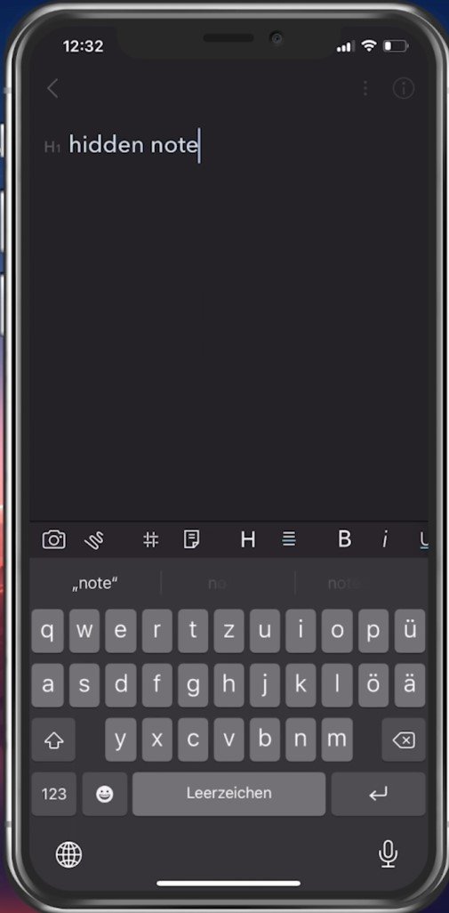 Nadat je een aparte notitie-app hebt geïnstalleerd, zoals Bear, kun je doorgaan en de notitie die je wilt verbergen opslaan in de nieuwe app.
