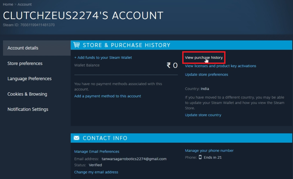 Ga naar de Steam-accountdetailpagina