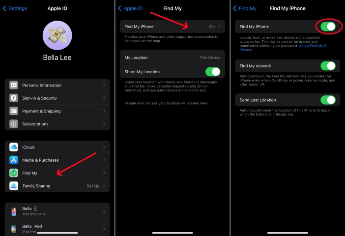 Het is van cruciaal belang om Zoek mijn iPhone uit te schakelen voordat u iOS 18 Bèta verwijdert. Dan wordt u niet gevraagd het Activeringsslot van uw iPhone te verwijderen. Volg de onderstaande stappen om Zoek mijn iPhone uit te schakelen.