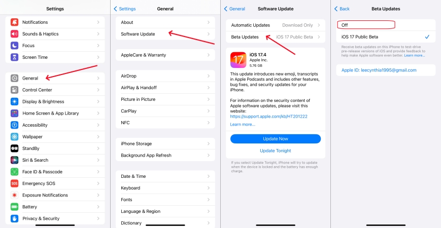 Vraag 2.Hoe iOS openbare bèta verwijderen?