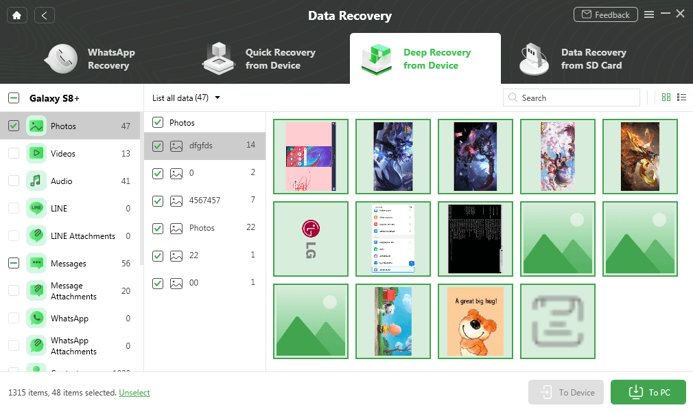 - De Deep Recovery-modus kan dieper gaan om verwijderde foto's terug te krijgen.