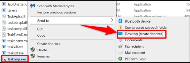 Stap 4:Het vijfde item in dat vervolgkeuzemenu is een optie met de tekstTaakbeheer; klik met de rechtermuisknopHet